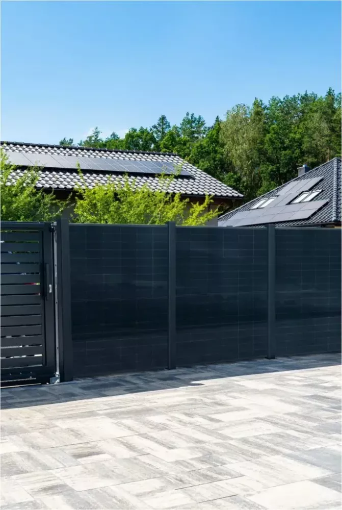 Ein Solarzaun verbindet die Einfriedung des Grundstücks mit der Gewinnung von Solarstrom. Die Elemente von Falagotti bestehen aus langlebigen Materialien wie Aluminium und WPC und sind mit Solarmodulen ausgestattet, die Sonnenlicht in Energie umwandeln. So entsteht ein Sichtschutz, der nicht nur das Grundstück begrenzt, sondern auch aktiv zur eigenen Energieversorgung beiträgt.